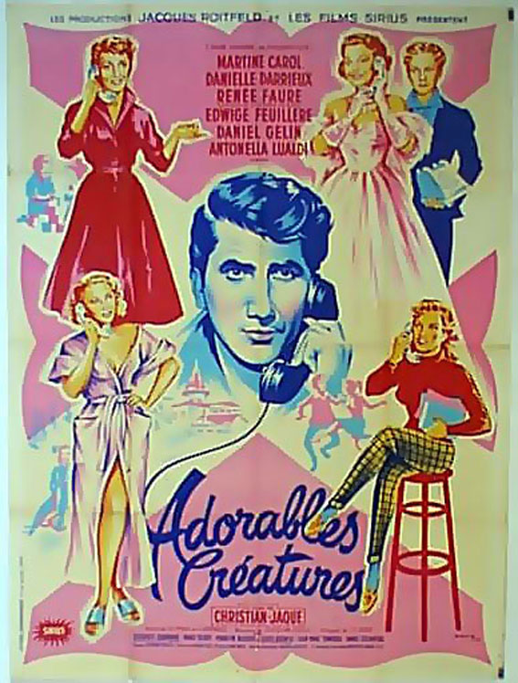 Восхитительные создания / Обожаемые создания / Adorables сréatures. Франция-Италия, 1952. Режиссер Кристиан-Жак. Сценаристы: Шарль Спаак, Кристиан-Жак, Жак Компанеец, Мишель Одиар. Актеры: Даниэль Желен, Антонелла Луальди, Даниэль Дарьё, Мартин Кароль, Эдвиж Фёйер, Рене Фор, Луи Сенье и др. Комедия. Мелодрама. Премьера: 5.09.1952. Прокат во Франции: 2,7 млн. зрителей.