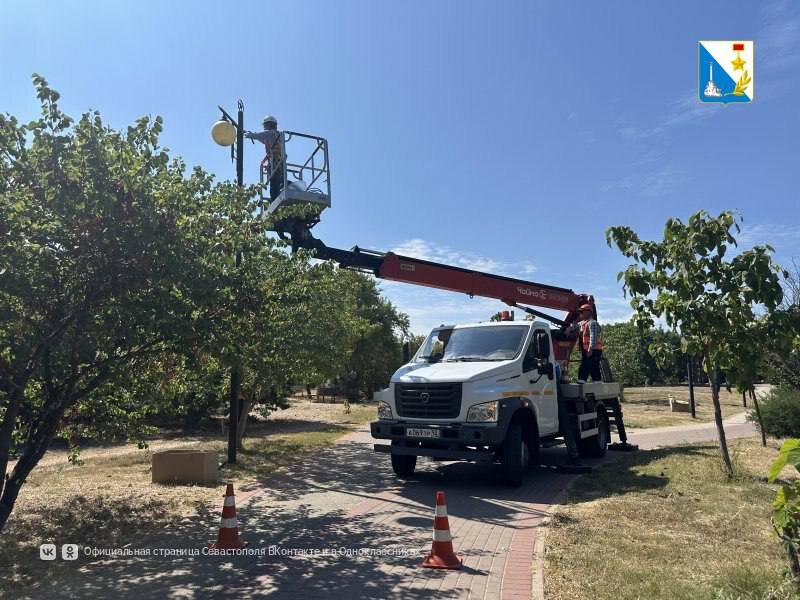 Обновляем освещение В Парке Победы на двух аллеях установили 46 из 62 новых энергоэффективных светильников. 🍂Теперь на каждой опоре вместо двух ламп используется один современный светильник, что сокращает энергопотребление более чем в 3 раза. Запланирована поэтапная замена освещения во всем парке. Правительство Севастополя