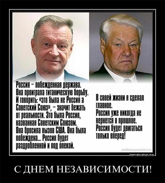 Тема: Является 12 июня праздником «Дня России», как утверждает будущий святой РПЦ В.В.Путин? Или, как указывал Збигнева Бжезинского»: «Россия – это побежденная держава, она проиграла титаническую борьбу, и говорить - это была не Россия, а Советский Союз - значит бежать от реальности»?