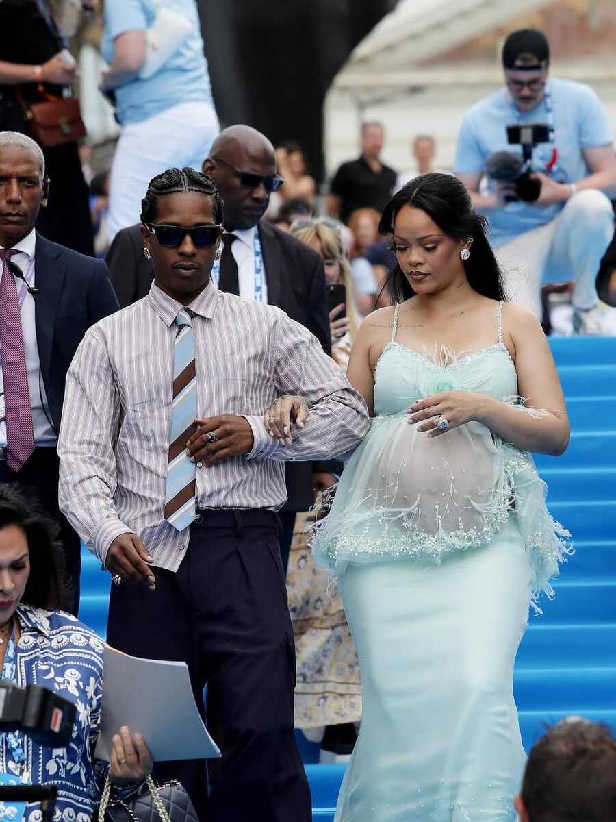 Беременная третий раз Рианна продолжает показывать, что статус самой модной мамочки присвоен ей не зря. На премьеру мультфильма «Смурфики» певица вышла в в наряде голубого цвета, что идеально подошло под стилистику. Казалось, что все вполне обыденно, но на создание этого кастомного образа у Chanel ушло более 840 часов! Юбка и топ были расшиты кристаллами, пайетками и перьями вручную! А как Вам такой беременный образ?