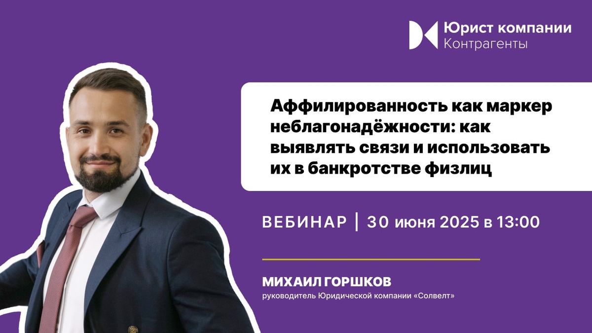 Разберём на вебинаре, как аффилированность помогает выявить риски при проверке должника и используется для защиты или оспаривания сделок.