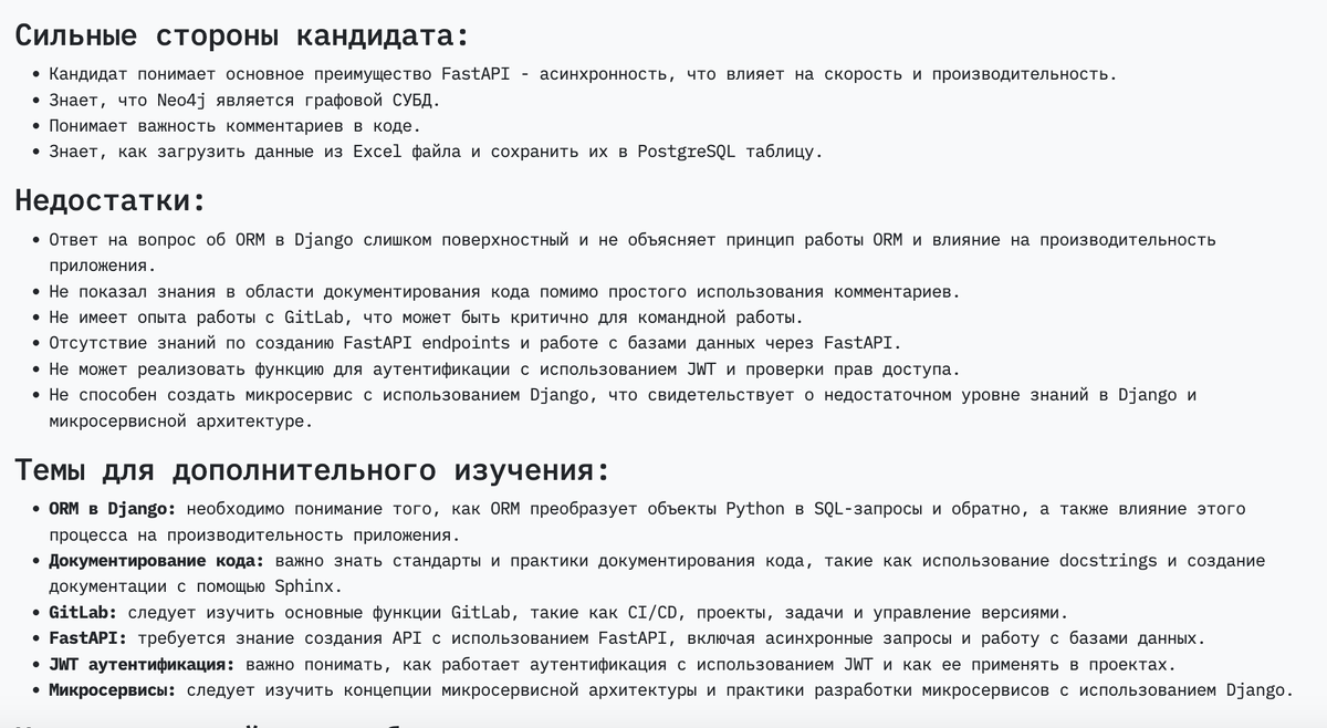 Python-разработчик, маркетолог, дизайнер или продакт-менеджер — AI адаптирует вопросы под любую сферу. AI задаёт вопросы