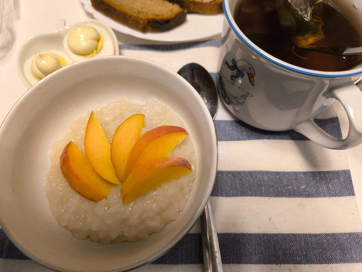 У нас в Подмосковье осень пришла, друзья! Утром на градуснике было плюс 12 всего и ещё с холодным ветром. Я конечно утеплилась -- тёплые носки, теплые штаны с свитер с горлом, пальто и шапка. В таком наряде отправилась на веранду и поняла, что готовить на веранде завтрак не буду -- слишком уж холодно. Плюс ветерок задувает. Взяла продукты и отправилась на кухню в дачный дом. Там тепло -- леггинсы, футболка и тапочки -- "униформа" для дома. С вечера замочила рис. А сегодня на завтрак рисовая каша с кокосовым молоком, варёное яйцо с майонезом, хлеб и чай без сахара. После завтрака убралась на кухне и немного в дачном доме. Затем поставила вариться щи на свиных рёбрышках. Дождь заладил и не хочет заканчиваться. Радует, что не пожалела денег и все свои немногочисленные уцелевшие после бесснежной зимы розы ( два куста) и пионы ( два куста) укрыла пляжными зонтиками. Пионы так вообще четвёртую неделю под зонтом сидят. И цветут себе, и пахнут. На самом деле такая тактика сохранения цветущих