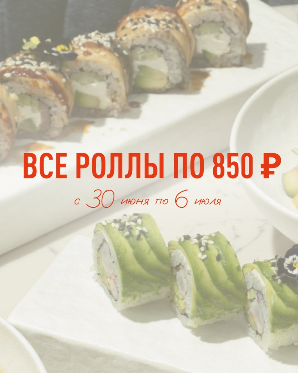 Врываемся в рабочую неделю с крутой акцией🔥 ➡️ Все роллы по единой цене - 850 ₽ Всю неделю в ресторанах Delicates Club! Только качественные и свежие морепродукты в каждом ролле: лосось, тунец, угорь, камчатский краб. Обязательно запланируйте поход в Delicates Club: 📍Петровский пр., 5 📍Якорная ул., 11К 🐙 Delicates Club