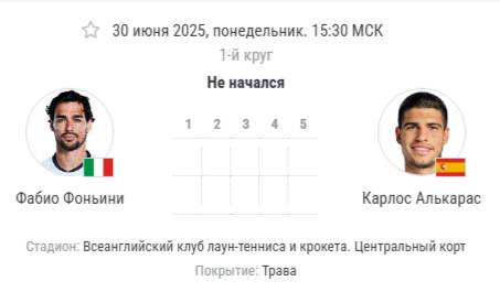 Π‘ΡΡΡ: 6:3, 6:2, 6:4. Π€ΠΎΠ½ΡΠΈΠ½ΠΈ Π²ΠΎΠ·ΡΠΌΡΡ 7-9 Π³Π΅ΠΉΠΌΠΎΠ² Π·Π° ΡΡΡΡ ΡΠ΅Π΄ΠΊΠΈΡ Π°ΡΠ°ΠΊ, Π½ΠΎ Π΅Π³ΠΎ ΠΏΠΎΠ΄Π°ΡΠ° Π±ΡΠ΄Π΅Ρ ΡΠ»ΠΎΠΌΠ°Π½Π° ΠΌΠΈΠ½ΠΈΠΌΡΠΌ 4 ΡΠ°Π·Π°.