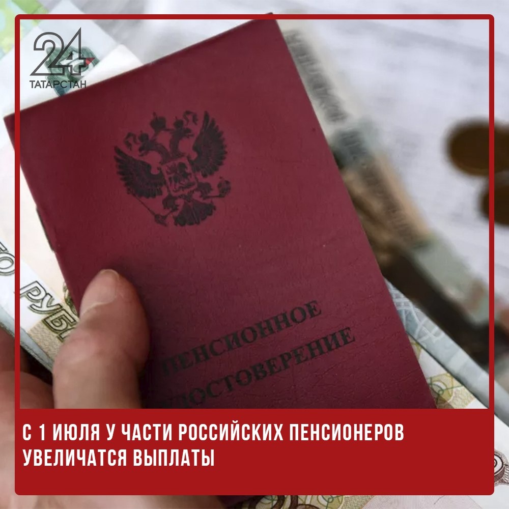 📈👛С 1 июля у части российских пенсионеров увеличатся выплаты С 1 июля в России увеличатся выплаты для части пенсионеров. Об этом агентству «Прайм» рассказал декан факультета права НИУ ВШЭ Вадим Виноградов. Повышение коснётся граждан, которым в июне исполнилось 80 лет. Фиксированная выплата к страховой пенсии для них увеличится вдвое и составит 17 815,4 рубля. Аналогичный перерасчёт положен пенсионерам, которым в июне установлена первая группа инвалидности. В этом случае будет начислена доплата за уход — 1314 рублей. Кроме того, если у пенсионера есть иждивенцы, то на каждого из них к пенсии дополнительно начислят по 2969 рублей 23 копейки. Подписаться на Татарстан-24 Отправить новость