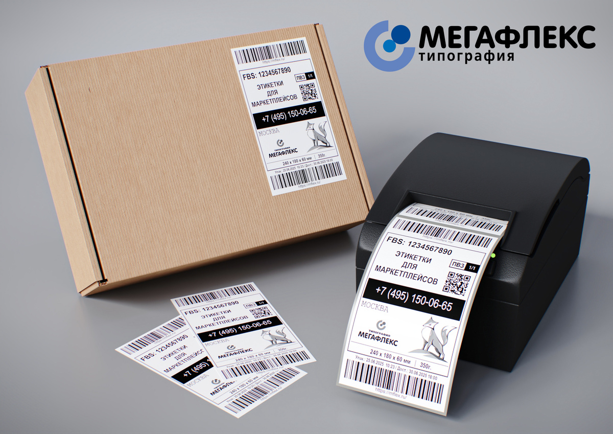 Поставить товар на виртуальную полку легко, но довезти его до клиента без единого сбоя, это уже целая наука. И ключ к успеху — самоклеящиеся этикетки. Они работают как паспорт, навигатор и рекламный баннер для каждой коробки одновременно. Разберемся, какие бывают этикетки для маркетплейсов и зачем они нужны. У каждой посылки обычно бывает три «паспорт-наклейки», и каждая отвечает за свой участок пути. Первая говорит курьеру, куда нести коробку, вторая помогает складу узнать, что внутри, а третья подтверждает государству и покупателю, что товар законный и безопасный. Теперь разберем их по порядку. Транспортная (FBS/DBS) Часто используются два стандарта размеров: 120 × 75 мм (классический) и 58 × 40 мм (компактный режим Ozon). Складская (FBO/FBA) Маркировочная Профессиональная типография — это не просто большой принтер, а целая экосистема, заточенная под требования маркетплейсов. У типографских машин есть готовые пресеты для Ozon, Wildberries и Яндекс Маркета: никакого ручного подгона по