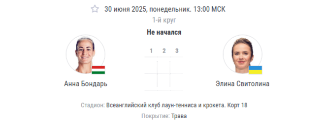 - Фора Бондарь (+6.5) по геймам (коэф. ~1.93) — оптимальный вариант, учитывая, что Свитолина редко выигрывает с разрывом >6 геймов на траве.