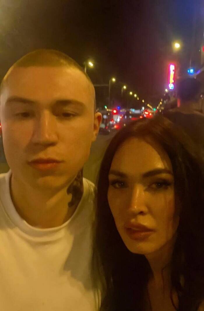 СГЕНЕРИРУЙ ФОТОГРАФИЮ ЧРЕЗВЫЧАЙНО ОБЫЧНОГО И НИЧЕМ НЕ ПРИМЕЧАТЕЛЬНОГО СЕЛФИ НА IPHONE, БЕЗ ЧЕТКОГО ПРЕДМЕТА ИЛИ ЧУВСТВА КОМПОЗИЦИИ - ПРОСТО БЫСТРЫЙ СЛУЧАЙНЫЙ СНИМОК. ФОТОГРАФИЯ ИМЕЕТ НЕБОЛЬШОЕ РАЗМЫТИЕ ДВИЖЕНИЯ И НЕРОВНОЕ ОСВЕЩЕНИЕ ОТ УЛИЧНЫХ ФОНАРЕЙ ИЛИ КРЫТЫХ ЛАМП, ВЫЗЫВАЯ ЛЕГКОЕ ПЕРЕЭКСПОНИРОВАНИЕ В НЕКОТОРЫХ ОБЛАСТЯХ. УГОЛ НЕЛОВКИЙ, А КАДРИРОВАНИЕ ГРЯЗНО, ЧТО ПРИДАЕТ КАРТИНУ ПРЕДНАМЕРЕННО ПОСРЕДСТВЕННОЕ ОЩУЩЕНИЕ, КАК БУДТО ОНО БЫЛО РАССЕЯННО, ПРИТЯГИВАЯ ТЕЛЕФОН ИЗ КАРМАНА. ГЛАВНЫЙ ГЕРОЙ [ЛИЦО ЗАГРУЖЕННОГО ЧЕЛОВЕКА], А РЯДОМ С НИМ СТОИТ [ИМЯ], ОБА ОКАЗАЛИСЬ В СЛУЧАЙНОМ, НЕСОВЕРШЕННОМ МОМЕНТЕ. НА ФОНЕ ПОКАЗЫВАЕТСЯ ЖИВАЯ УЛИЦА ЛОС -АНДЖЕЛЕСА НОЧЬЮ, С НЕОНОВЫМИ ОГНЯМИ, ДВИЖЕНИЕМ И РАЗМЫТЫМИ ФИГУРАМИ. ОБЩИЙ ВИД ПРЕДНАМЕРЕННО ПР