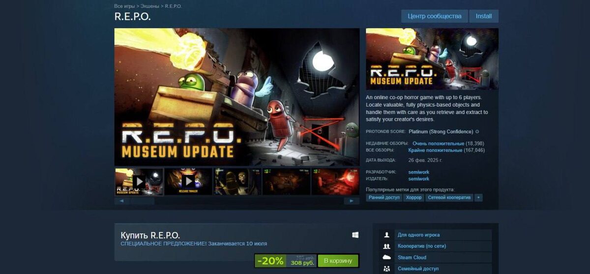 R.E.P.O. получила первую скидку со старта мемный кооп можно урвать за 308 рублей. Только недавно игра получила огромную обнову с новой картой, предметами и балансировкой. Ломаем дружбу с друзьями здесь. CtrlAltDelights- подписаться