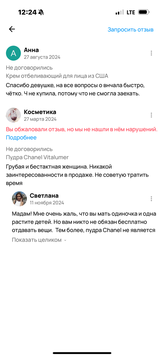 Авито - единственная интернет-площадка, где идут реальные продажи. Юла и Мешок с ним сравниться не могут. Они монополизировали рынок ресейла и диктуют свои правила продавцам. Ограничения лотов, грабительская комиссия за Авито-доставку (у меня 9 %). Сама Авито-доставка не защищает продавцов. С отменой Avito Exmail стало чуть получше, но все равно… она на стороне покупателей. Продавец не может оставить отзыв покупателю за его хамство в переписке, при продаже при личной встрече, а покупателю достаточно послать единственную точку в сообщении и он может накатать отзыв на одну звезду просто потому, что у него плохое настроение. И удалить этот отзыв невозможно, в лучшем случае переведут в категорию «без оценки» У меня тоже есть такой: мадам клянчила пудру Chanel, давила на жалось… она такая бедная-несчастная, детей кормить не на что…. заметьте, Авито не видит в отзыве нарушений, хотя про товар не сказано ни слова! Обратите внимание на ее ник! Вам все понятно? Профессиональный наглый перекуп