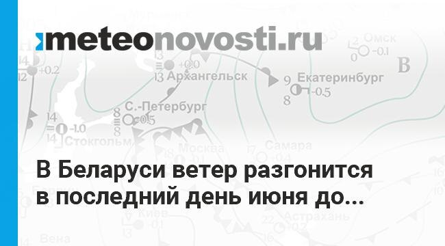 Центральный федеральный округ России сегодня полностью во власти раскрутившегося до больших высот циклона, прибывшего со Скандинавии, Центр циклона будет располагаться сегодня после полудня на востоке Смоленщины. Жители средней полосы России еще только в ожидании сильного резкого порывистого северо-западного ветра. Республика Беларусь в последний день июня оказалась уже в тылу этого глубокого вихря, в зоне очень больших перепадов атмосферного давления, поэтому в понедельник ветер в порывах в соседнем государстве будет усиливаться до 15-20 м/с. Сильные порывы северо-западного ветра будут отмечаться практически повсеместно и в первую ночь июля. В тылу циклона будет приниматься кратковременный дождь, но зонтики при таком ветровом напоре могут не выдержать! Перейти на сайт Прогноз погоды на 14 дней