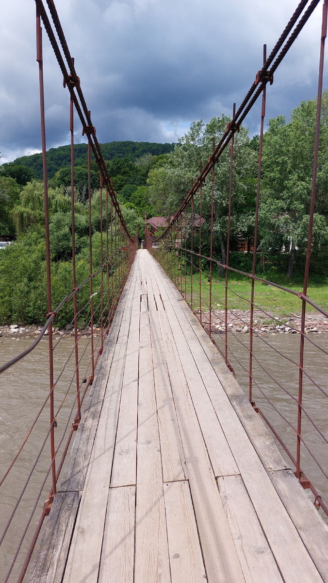 И хоть во 2 день отпуска у меня больше 10000 шагов, но по факту он проведён в кровати. Мы выбрались посмотреть на прекрасный подвесной мост, который вы уже видели видео, где мы вешали замок на годовщину. Прошли по местным магазинам и сувенирным лавкам. И после обеда зарядил дождь, который продолжался практически до самого утра. Хотя нет, вечером было примерно 2 часа с облачной погоды, в которой мы прогулялись ещё до теснины, но к тому моменту уже солнце почти зашло, и это было не совсем безопасно, поэтому мы быстро вернулись домой. И вот только в среду на 3 день нашего пребывания в горах мы отправились по-настоящему в горы. По плану мы хотели прогуляться вдоль теснины и посмотреть на водопады. Яндекс карты указывали, что весь наш маршрут займёт около часа туда и обратно. Вот примерно через час, когда мы прошли только 1 миллионную маршрута, у меня случилась 1 паническая атака. После вчерашнего дождя многие дороги, а точнее, 99% всего нашего пути была жуткая грязь. И спускаясь по те с Ни