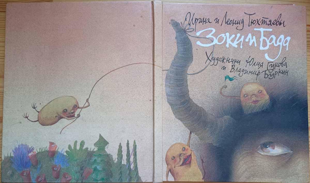 Тюхтяева, И.; Тюхтяев, Л. Зоки и Бада. Пособие для детей по воспитанию родителей. 1993 г. первое издание. Художники - Юлия Гукова и Владимир Буркин. Мудрая и смешная сказка о взаимоотношениях детей и взрослых. «Зоки и Бада. Пособие для детей по воспитанию родителей» — сказка для детей, написанная Ириной и Леонидом Тюхтяевыми в 1980 году. Сюжет: о сладкоежках и проказниках зоках и лохматом чёрном баде — с хвостом, копытами и разными рогами. О том, как однажды зоки завелись у бады в банках с мёдом, и о том, как они стали жить вместе и друг друга воспитывать. Первое отдельное издание книги вышло в 1993 году в издательстве «Микрополь». С тех пор она неоднократно переиздавалась с новыми иллюстрациями. Книга примечательна тем, что сказку рассказывают от лица детей. По ней ставят спектакли, а в некоторых школах она включена в список литературы для обязательного чтения Ирина и Леонид Тюхтяевы — непрофессиональные писатели, не имевшие чёткой структуры произведения. Истории из сказки в