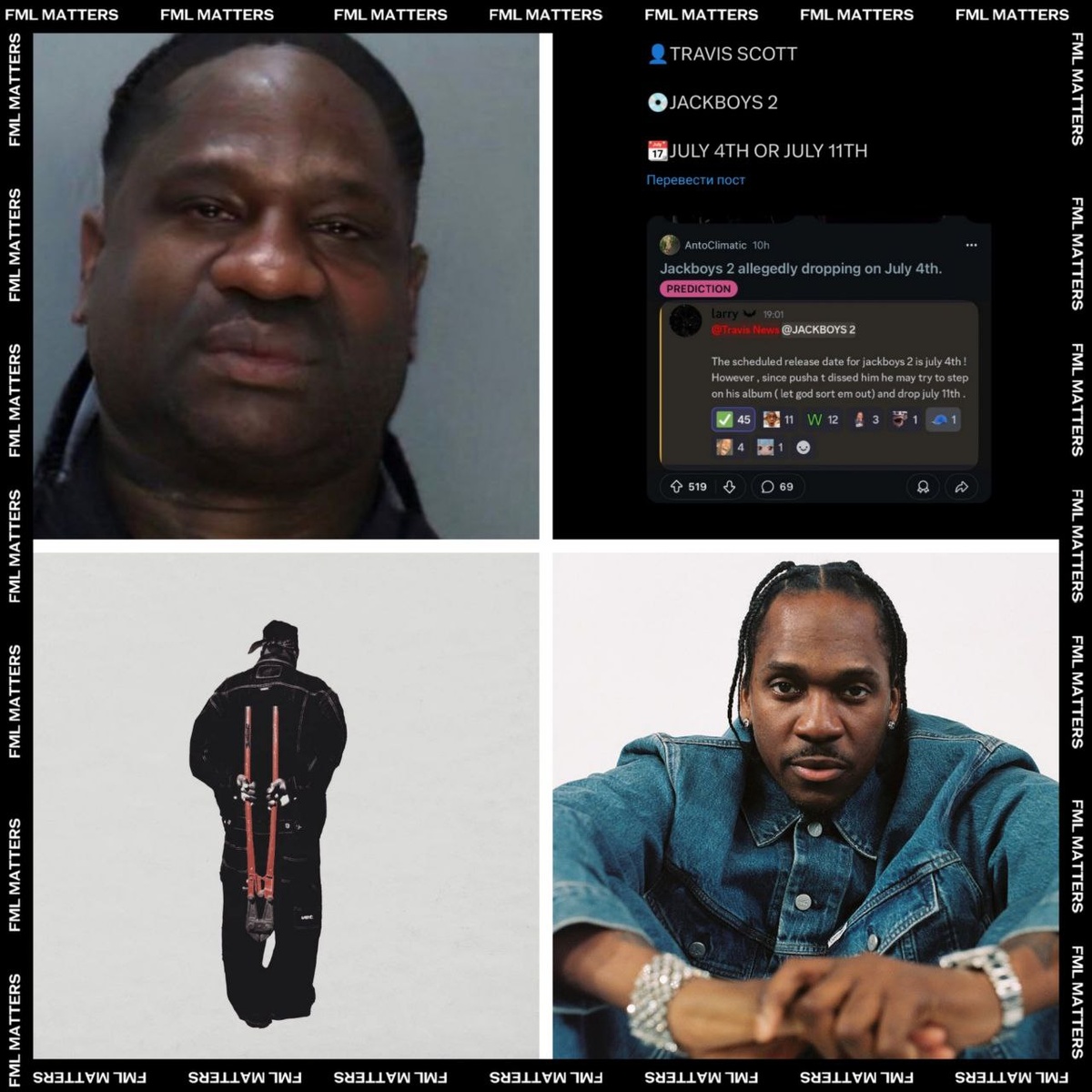 В ответ на пост ⁉️ «JACKBOYS 2» ОТ TRAVIS SCOTT ВЫЙДЕТ 11 ИЮЛЯ? В западных СМИ активно обсуждается, что Жак может выпустить «JACKBOYS 2» 4 или 11 июля — в тот же день, когда Pusha T и Clipse дропнут свой альбом «Let God Sort Em Out» Это подогревает интерес, учитывая давний конфликт между артистами: недавно Pusha T выпустил трек «So Be It» с прямыми выпадами в адрес Трэвиса, а сам Скотт неожиданно подписался на сатирический аккаунт, который пошутил о релизе «JACKBOYS 2» в один день с Clipse. Трэвис известен тем, что любит выпускать свои альбомы одновременно с релизами других крупных артистов: ➖ ASTROWORLD — в один день с «Swimming» Мак Миллера ➖ UTOPIA — в день релиза «AUSTIN» от Post Malone ➖ DAYS BEFORE RODEO — в день выхода «Short n’ Sweet» Сабрины Карпентер ➖ JACKBOYS 2 — пока интрига сохраняется 💀 FML MATTERS