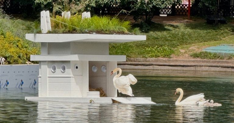У лебедей на Патриарших теперь новый дом — плавучая дизайнерская вилла