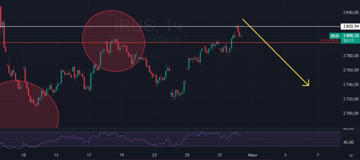 🏦 Индекс Мосбиржи 🟢 Все блогеры нарисовали огромные треугольники, хотя их так рисовать неправильно. Треугольники эти у них пробились вверх. Благодаря этой идее огромные массы вошли в лонги по акциям и по индексу, а ракеты что-то нет. 🟢 В этом коррекционном облаке вообще красивых фигур не рисуется, поэтому я единственное что смог найти - это клин в RSI. об этом писал тут. 🚗 В целом в рынке каша. Сходили сегодня вниз, закрыли гэп, который образовался с пятницы. То есть полностью слили все речи Путина, которые были на вечерке. Жду плавного сползания рынка вниз. Дивы Сбера и ожидание снижения ставки будут мешать падать рынку, но позитива в рынке нет, только эти ожидания. Нефть слаба и указывает нам путь вниз. #индекс #рубль #индексмосбиржи #ММВБ #IRUS #MXI #MIX #IMOEXF #bogdanoffinvest