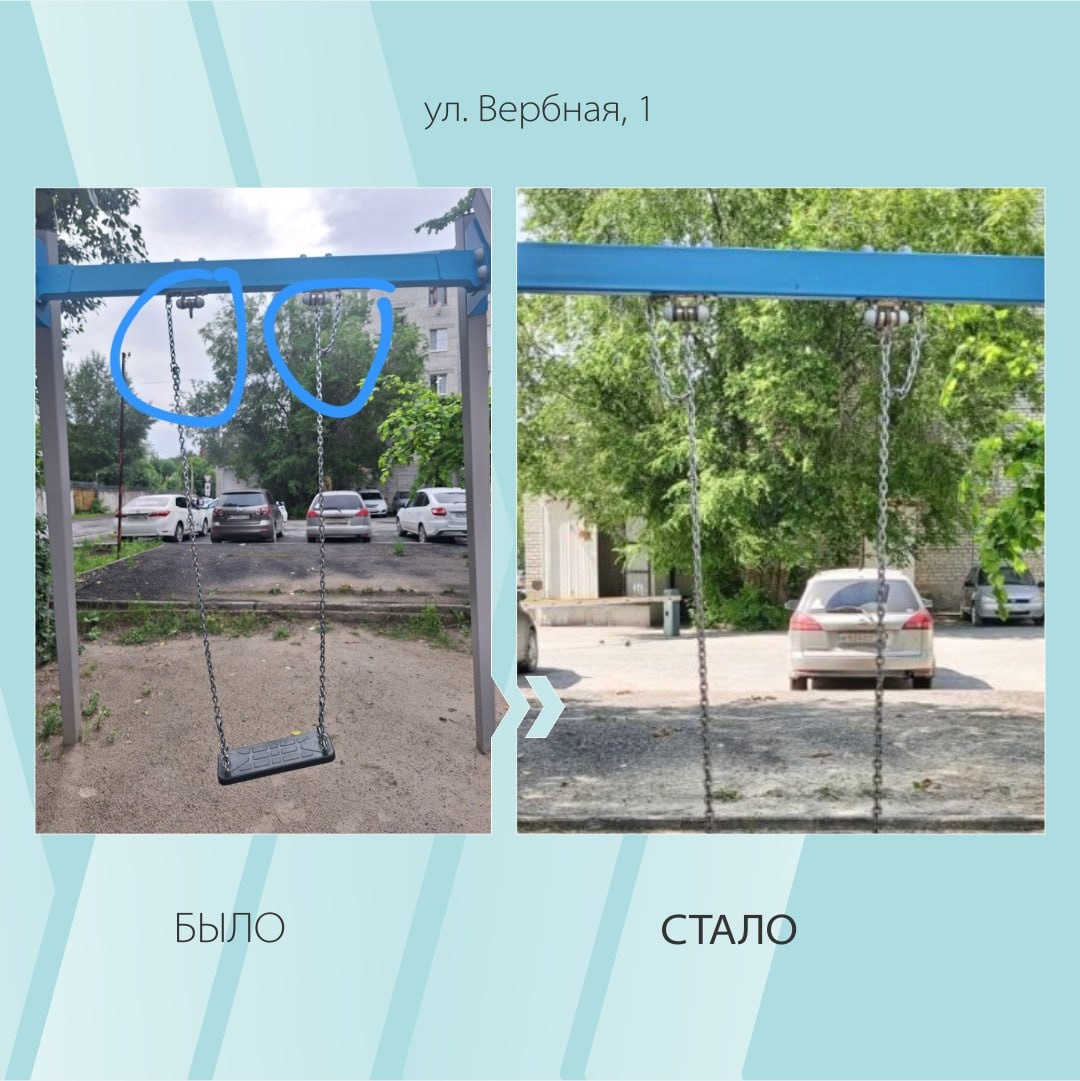 Недавно она заметила, что на детской площадке у дома № 1 по улице Вербной сломаны качели, и сообщила об этом на портал «Тюмень — наш дом», в категорию «Текущее содержание дворовой территории». В управе Ленинского округа обращение приняли в работу, 26 июня квартальный инспектор