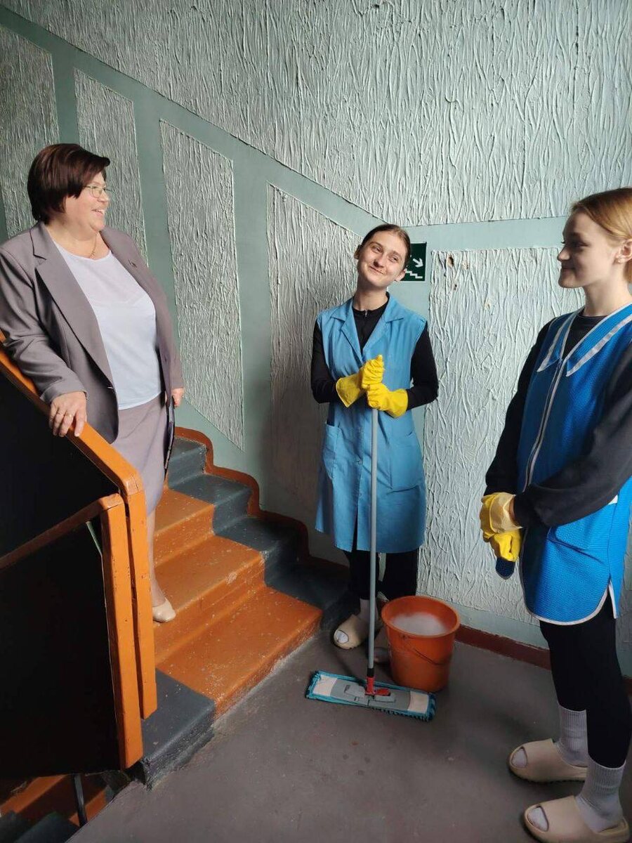 🤩 Сегодня мобильная группа под руководством начальника управления по труду, занятости и социальной защите райисполкома Елены Овчинниковой провела мониторинг работы студенческого отряда в УКП ЖКХ «Бешенковичский коммунальник».