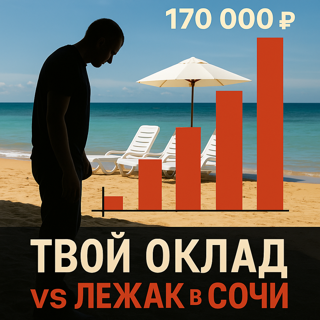 Или торгуешь в чате. А потом находишь статью, где говорят: «Средний лежак в Сочи зарабатывает до 170 тысяч рублей в месяц. При ставке 700 рублей в час и загрузке 8 часов в день». Ты офигел?