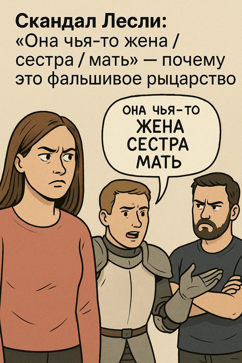 «Подумай, а если так пристанут к твоей матери!» Выглядит защитно, но суть та же: моё тело превращают в объект с ярлыком собственности. То есть место, на которое заранее повесили табличку «ЗАНЯТО». Уважать границы предлагают не из-за моего права на неприкосновенность, а из-за страха обидеть ДРУГОГО МУЖЧИНУ, а не меня. Логика Лесли просто меняет упаковку, но смысл остаётся: женщина — ресурс. Почему это риторика прошлого — и почему она вредна всем Если в кад