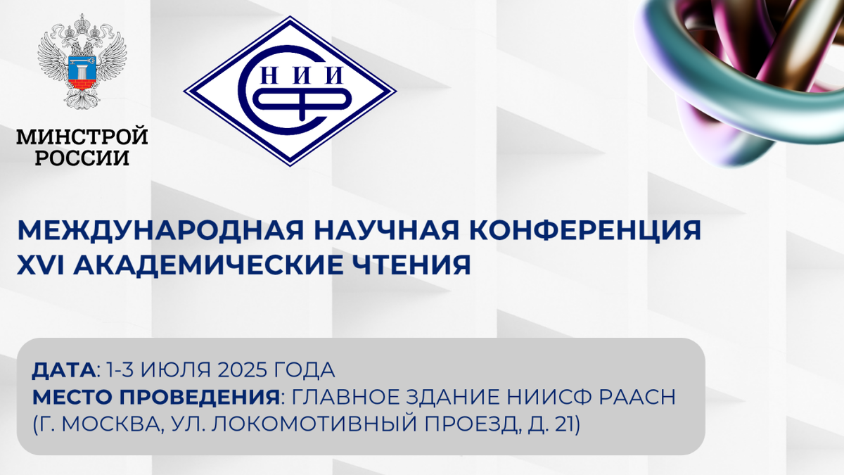 🆙 ЗАВТРА СТАРТУЮТ XVI АКАДЕМИЧЕСКИЕ ЧТЕНИЯ НИИСФ РААСН ➡️ Завтра, 1 июля, открывается XVI Международная научная конференция «Академические чтения» НИИСФ РААСН — знаковое событие для всего строительного сообщества России. Мероприятие продлится три дня и соберет ведущих специалистов отрасли на площадке НИИСФ РААСН 🤝 Конференция проводится при поддержке Минстроя России и Российской академии архитектуры и строительных наук 📍 Открытие и пленарное заседание конференции 1 июля пройдут в Театре «Вишневый сад» в 10:00 по адресу: Малая Сухаревская площадь, 10, Москва ➡️ 2-3 июля Конференция пройдет по адресу: г. Москва, Локомотивный проезд, д. 21, главное здание НИИСФ РААСН (схема проезда) ✔️ В этом году конференция приобретает особое значение, будучи посвященной 100-летию академика РААСН Бондаренко В.М. и 96-летию академика РААСН Осипова Г.Л. — выдающихся ученых, чьи труды заложили фундамент современной строительной науки в нашей стране 🗂 Тематический фокус чтений охватывает наиболее