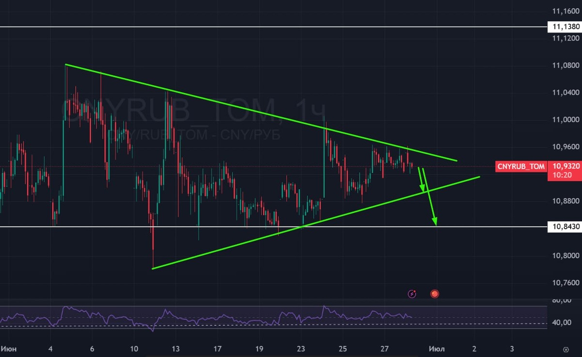 🟢 В юане импульса вверх нет, поэтому вероятность отправиться снова на 10,84 очень высокая.