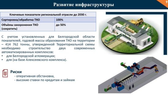 Их строительство необходимо для достижения целевых показателей к 2030-му году: по сортировке мусора 100%, по объёму захоронений – до 50%, рассказал замгубернатора Сергей Довгалюк.