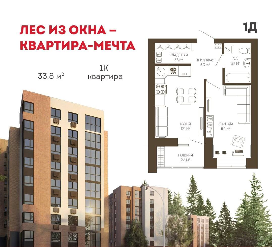 Своя полноценная квартира у леса за 20 000 ₽/мес