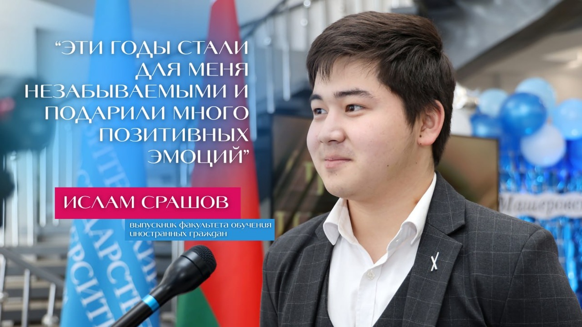 🟢Ислам Срашов, выпускник факультета обучения иностранных граждан ✅«Эти годы стали для меня незабываемыми и подарили много позитивных эмоций» — Были и маленькие трудности, однако я рад, что эти моменты я переживал вместе с друзьями, которых приобрел именно в ВГУ. Спасибо всем, кто сделал мою жизнь еще ярче и краше за время обучения. Мне хотелось бы отметить нашу Лигу КВН ВГУ имени П.М. Машерова. Именно там я раскрылся, познал себя нового и смог пересилить свои внутренние конфликты. Сегодня мы прощаемся как студенты, но мы точно останемся теми людьми, которых объединила alma mater. #новости