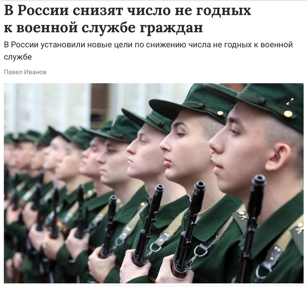 Моя «любимая» рубрика: жареные заголовки🥲 Согласно распоряжению правительства, количество граждан, не годных к армии по состоянию здоровья и уровню физического развития, планируют снизить до 17,5% в 2030 и до 16% в 2036 году. Вы спрашиваете, я комментирую: 1. Самого «распоряжения» пока никто в глаза не видел. Ориентируемся только на заявления СМИ 2. Такая программа существует с 2010 года, и цель там всегда одна: побольше годных, поменьше негодных. Ничего нового 3. Снижать количество не годных к службе по состоянию здоровья планируют, согласно заявлениям ТАСС, с помощью патриотического воспитания, формирования культуры здорового и активного образа жизни в молодежной среде, повышения престижа военной службы и развитию массового спорта (там, кстати, среди прочего лазерный бой, гонки дронов и спортивное программирование😄) Вот такие дела, особо и говорить тут не о чем🤷♂️ И да, как я уже и сказал в эфире, есть ещё парочка методов снижения количества не годных к армии ребят. Только пр