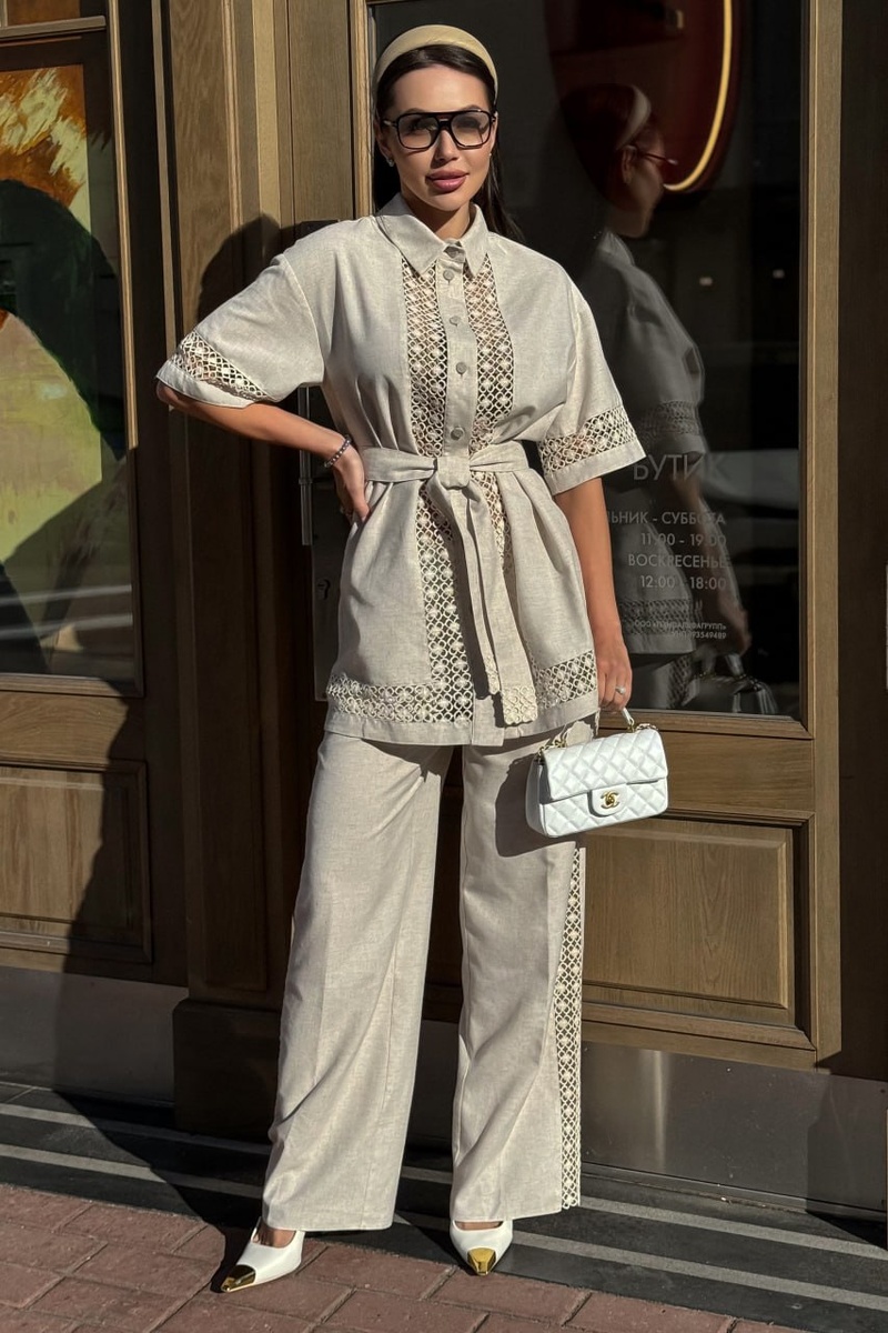 Представляем новинку — льняной костюм с брюками и кружевом, созданный для тех, кто ценит натуральные ткани, утончённый стиль и свободу быть собой 💙