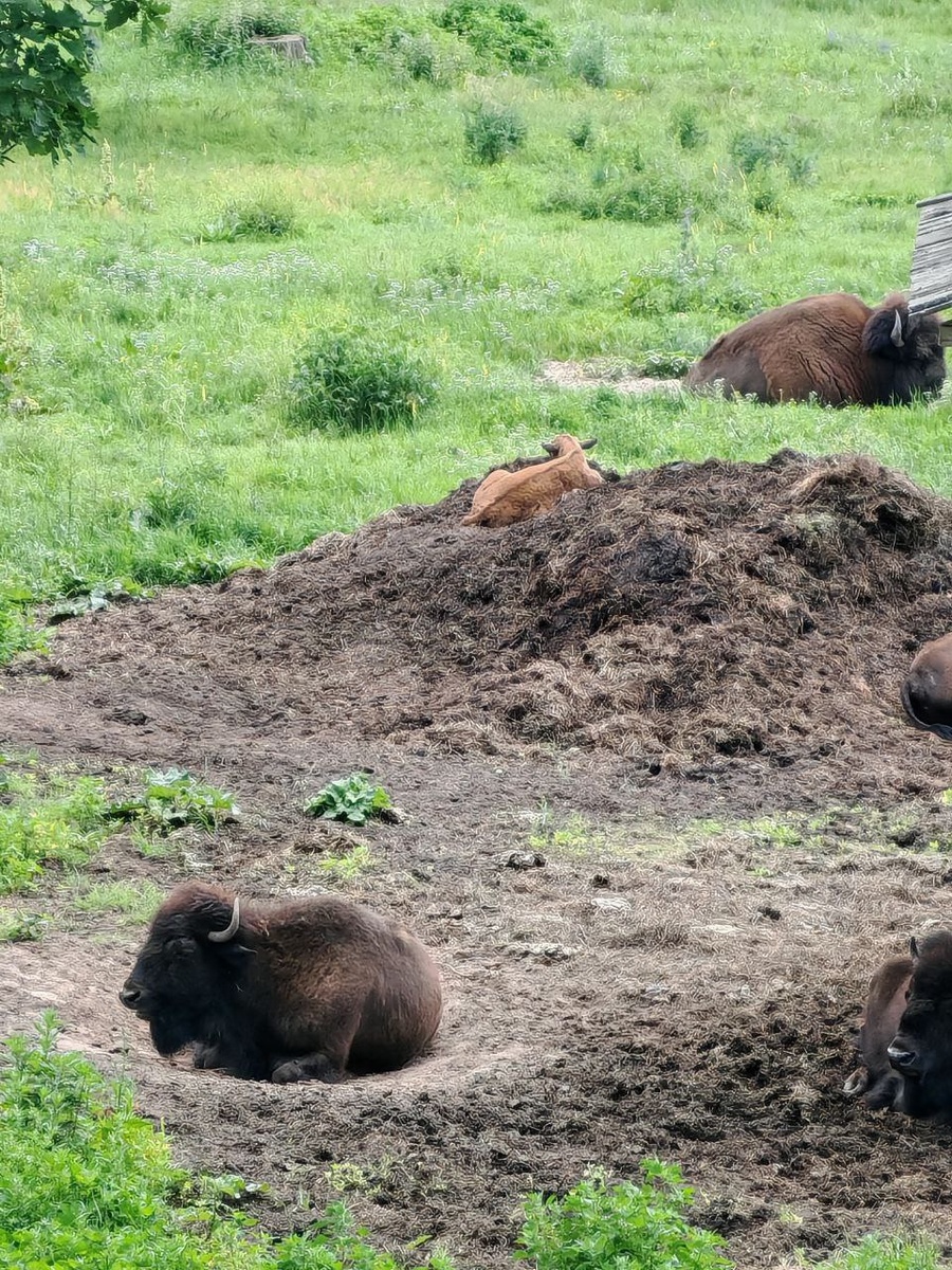 Сегодня расскажу об увлекательном путешествии в которое мы отправились с семьей на выходные. Оно вело к редким исчезающим животным. Мы поехали на машине в город Серпухов, остановились на день переночевать и изучить местность. А после поехали в Приокско-Террасный заповедник посмотреть зубров. Я увидел их впервые в жизни. Они проживают в вольерах площадью 25 га в зубровом питомнике. Заходить внутрь можно только с экскурсоводом. Экскурсия очень понравилась. Отдельная благодарность экскурсоводу Тимуру, который провёл нам экскурсию. В питомнике зубров выращивают, а потом отдают в другие особо охраняемые территории. Кроме зубров там проживают американские бизоны. Обитатели питомника питаются травой, а сотрудники подкармливают их комбикормом. В питомнике 6 загонов с зубрами и 1 загон с бизонами. Все они живут в комфорте и удовольствие. Однажды в 2017 году зубры совершили массовый побег из-за сильного ветра. Их искали всё лето малой авиацией. Наконец зубры сами пришли в заповедник, потому что