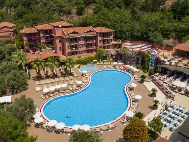Отель находится на холме в районе Оваджик, в окружении соснового леса. До пляжа Олюдениз — 10–15 минут на трансфере.