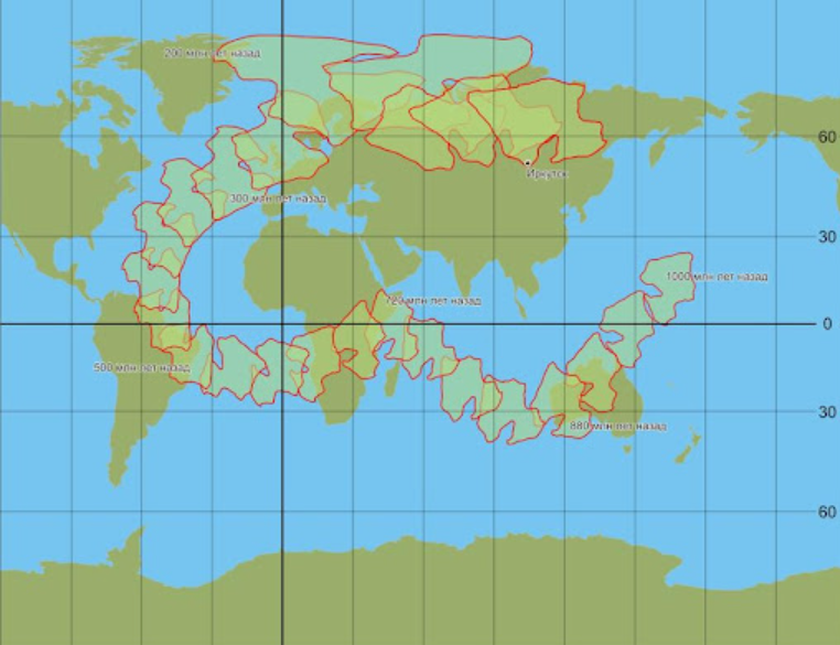 Палеомагнитные исследования показали удивительный факт: Сибирская платформа за свою историу успела побывать на экваторе, в тропиках и у полюсов. 500 миллионов лет назад, в кембрийский период, она находилась в южном полушарии, о чем свидетельствуют находки тропических ископаемых организмов в сибирских отложениях. Геологические доказательства