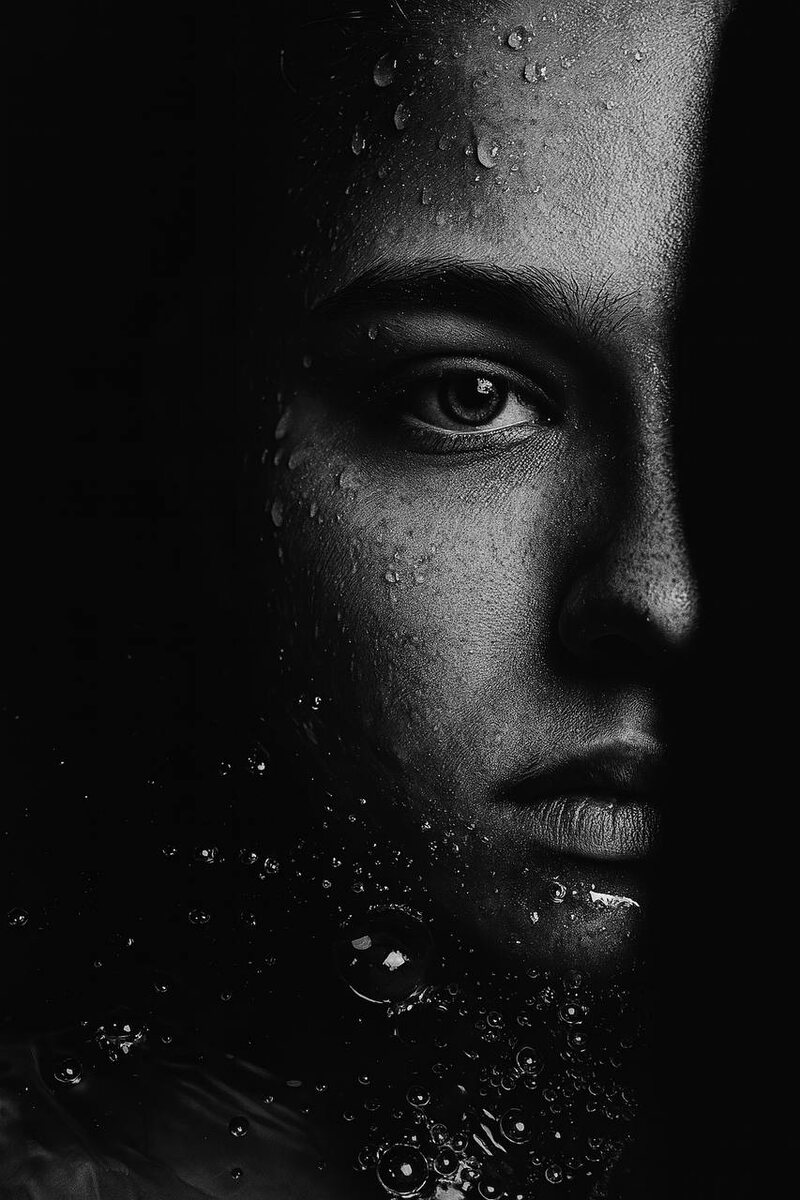 Портретное фото в GPT👇🏻 Добавляете в GPT ваше фото и промпт ниже: Создай черно-белый портрет крупным планом с высоким контрастом. На изображении должна быть показана только одна правая половина лица человека, фото которого я прикладываю, частично погруженная в воду, на коже и волосах должны быть видны капли и пузырьки. Освети правую сторону лица драматично, оставив остальное в глубокие тени. Фон тёмный. Подчеркни текстуру кожи, оставив все черты лица похожими как на фотографии, подчеркни фокус глаза, чтобы создать мрачную и кинематографичную атмосферу. На выходе получаете стильное фото для ваших соц.сетей🔥 Нужна подборка таких промптов для разных стилизованных изображений?
