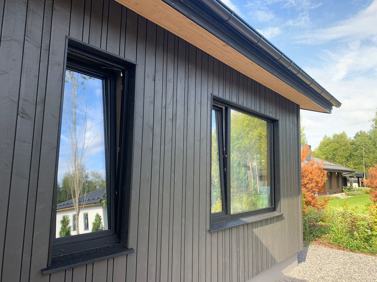 Мода на вертикальную деревянную обшивку фасада загородных домов из досок разной ширины пришла из Финляндии. Такой фасад выглядит необычно: кажется, что все доски имеют разную ширину, но при этом нет явно повторяющегося шаблона. Для такого фасада финские строители используют скандинавскую доску с поднятым ворсом – профиль UYS 20×170 мм. Но заказывают её в трёх вариантах фрезеровки: Пример профилей можно увидеть на сайте производителя – питерской компании "Краски Доски" . Хотя ширина досок одинаковая, разная фрезеровка создаёт иллюзию разной ширины. Схема монтажа: Доски чередуются в последовательности: UYS → UYS 1/3 → UYS 1/2 → UYS 3/1 В результате фасад выглядит динамичным и "живым". Если не хочется заморачиваться с разными фрезеровками, можно взять три скандинавской доски UYS разной ширины: Но просто чередовать их в случайном порядке – не лучшая идея. Чтобы фасад выглядел гармонично, нужно использовать определённую комбинацию, которая повторяется по всей поверхности. Монтаж выполняется