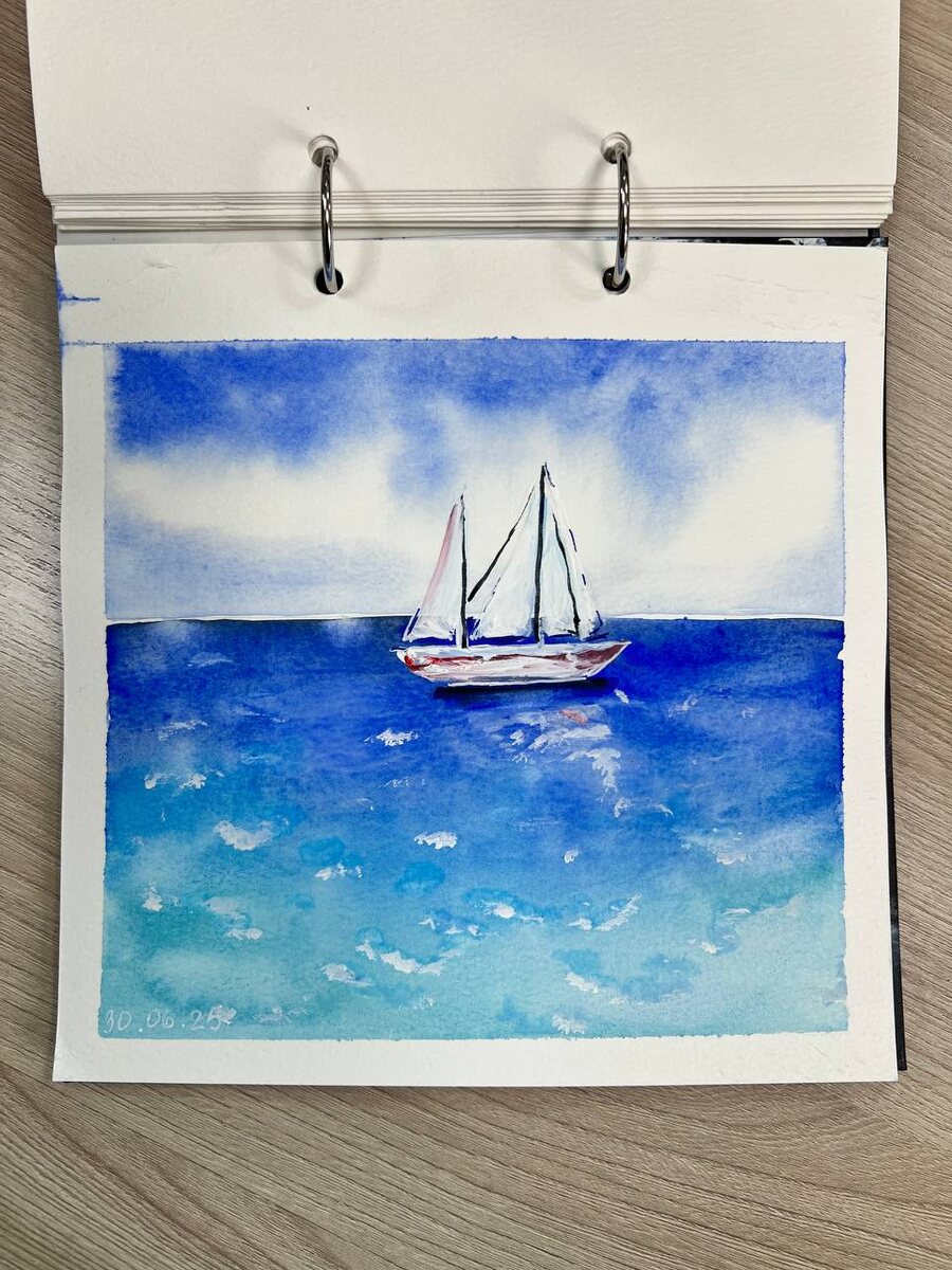 Последний лист скетчбука. #скетчвобед #зарисовка Белеет парус не одинокий 🌊
