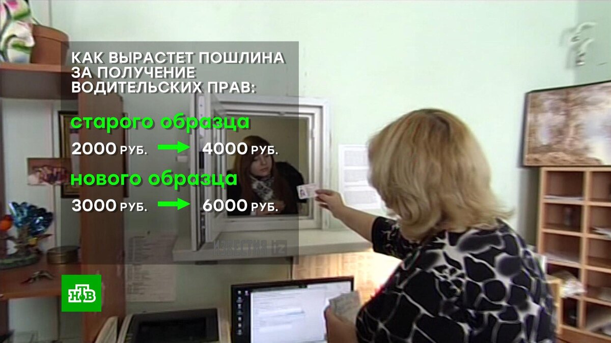 [ Смотреть видео на сайте НТВ ] С сентября этого года сбор за получение водительских прав вырастет в 2 раза: за удостоверение старого образца он составит 4 тысячи рублей, а за новое — 6 тысяч рублей. С сентября этого года в России вырастут некоторые транспортные пошлины. Об этом пишет газета «Известия», ссылаясь на законопроект Минфина, и уточняет: профильные ведомства документ согласовали. Например, пошлина за получение водительских прав увеличится в 2 раза. Сейчас оформить права стоит 2 тысячи рублей, а с сентября будет 4 тысячи рублей. Права нового образца подорожают с 3 тысяч до 6 тысяч. В январе этого года РБК писал, что водительские права нового образца — это те, в которых есть чип с биометрическими данными водителя и такие в России пока не выдают, это только планы ГАИ. Еще в законопроекте говорится о том, что госпошлина за выдачу госномеров на автомобиль вырастет с 2 до 3 тысяч рублей, а для автошкол вводится новая пошлина в 15 тысяч рублей за выдачу заключения о соответствии уч