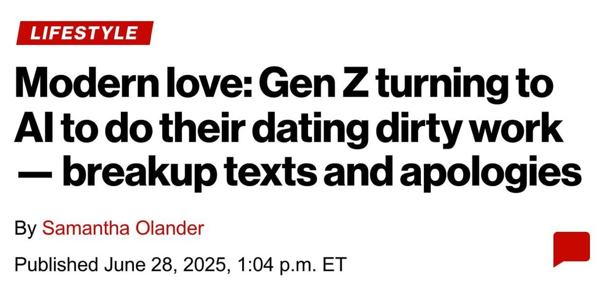 New York Post: почти половина зумеров используют ИИ, чтобы расстаться со своим партнером. Да и в целом чат-ботам доверяют написание описаний и начало знакомства.