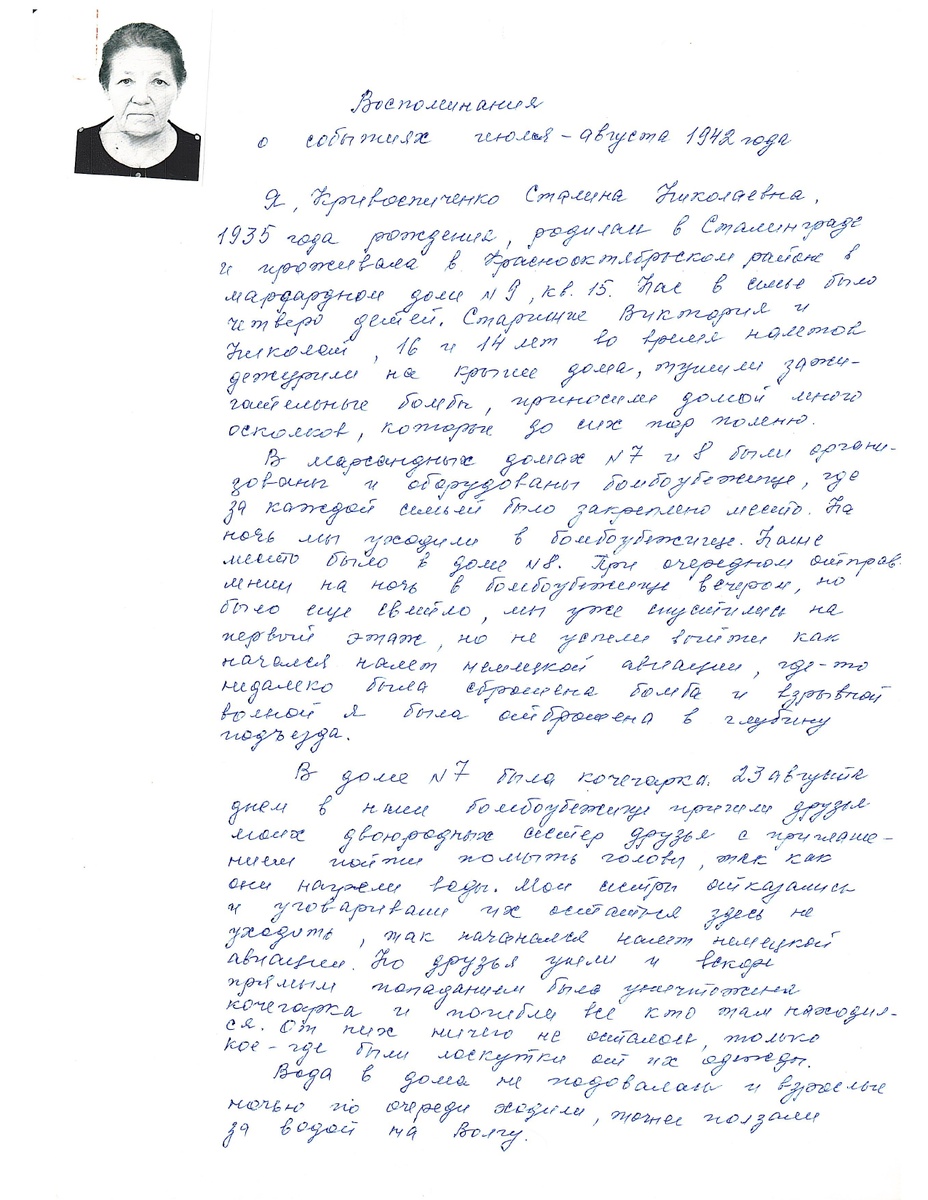 Воспоминания Кривоспиченко Сталины Николаевны