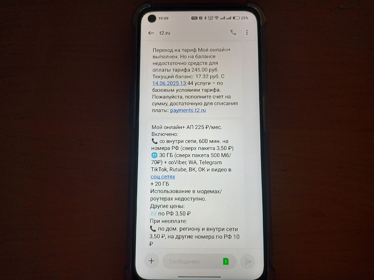 Буквально через пару дней после того, как я инициировал перенос, мне на телефон начали приходить SMS от Tele2. Суть была одна: "Останьтесь с нами, и мы дадим вам скидку 50% на связь!" На тот момент я уже был настроен на Т-Банк, мне нравился их сервис, и предложение от них было действительно выгодным: 1200 минут (хотя столько мне не надо), 20 ГБ трафика – и все это всего за 270 рублей в месяц. А бонусом к этому шла компенсация услуг связи на 2000 рублей на целый год! Это означало, что моя реальная ежемесячная плата в первый год составила бы всего 104 рубля. Вдумайтесь – это почти в 5,5 раз дешевле, чем я платил, при этом с гораздо лучшими условиями по трафику!