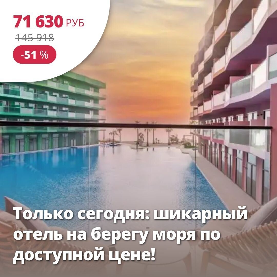 🔥 Цена тура: 71 630 руб/чел ❤️ Только сегодня: шикарный отель на берегу моря по доступной цене! 🏠 5*, ОАЭ из Москвы 11 июля на 14 ночей, Завтрак. VOCO MONACO DUBAI (EX. COTE D AZUR MONACO HOTEL) 5* Оживленный отель только для взрослых на острове искусственного архипелага Мир. Уникальный пляж, вечеринки в течение всего дня, улица с контролируемым климатом, аутентичные французские рестораны и места для отдыха. Подойдет для любителей активного отдыха, вечеринок и музыки. Цена отличная! Собираем чемодан и летим на море! Подробнее здесь: starttime.ru Лучшие туры https://starttime.ru/search-tours #ЛучшийТур #СтартТайм