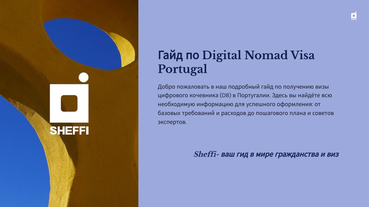🇵🇹 Как получить ВНЖ Португалии через Digital Nomad (D8) Португалия уже несколько лет подряд — одно из самых популярных направлений для digital nomads, фрилансеров и удалённых специалистов. 🧳 Виза D8 — понятный и востребованный вариант для тех, кто хочет жить у океана, путешествовать по Европе и при этом оптимизировать налоги. К тому же, она открывает доступ к ВНЖ буквально в первый же год — в наших материалах есть максимально подробная инструкция для наших пользователей! 💡 Из преимуществ: — D8 — это возможность открыть банковский счёт и зарегистрировать налоговый статус в Европе. — После 5 лет можно получить ПМЖ или подать на гражданство, сохранив гибкий образ жизни. — Португалия лояльна к семьям: большинство digital nomads оформляют ВНЖ сразу на всех членов семьи. ▶️Полная версия гайда А если потребуется сопровождение — мы подберём для вас проверенного специалиста и поможем избежать ошибок. Sheffi — ваш гид в мире гражданства и виз!