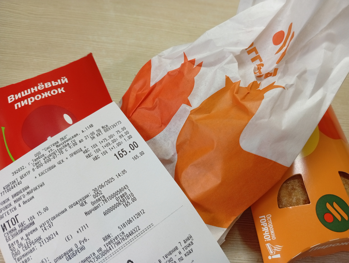 Пока в доме полно белых грибов, мы решили, что хотим поесть на ужин жареную картошку с грибочками. И обязательно с зеленым луком. К этой дивной еде муж попросил сделать салат из свежей капусты с морковью и яблоком. Ну раз задумали, то именно такой ужин я и приготовила. А к нему еще неожиданно добавились наггетсы. А откуда же они взялись? А тут все просто. Мы решили сегодня прогуляться в парке и дошли до Вкусноточки. Я хотела купить себе пирожки, это единственное, что я там покупаю. Я заранее заглянула в приложение и обнаружила там предложение - 4 наггетса за 1 рубль. С чего такая щедрость, не знаю, я давно ничего не покупала. Но раз так, решили взять бесплатные куриные кусочки и добавили их к ужину. Муж, кстати, не оценил курицу в кляре, так что большая часть досталась мне. А к чаю у нас сегодня были другие вкусняшки. У меня, понятное дело, пирожок из Вкусноточки. Решила первым съесть те, что с манго. Вишневый оставила на завтра. У мужа бутерброды с домашней котлетой, сыром и салатом.
