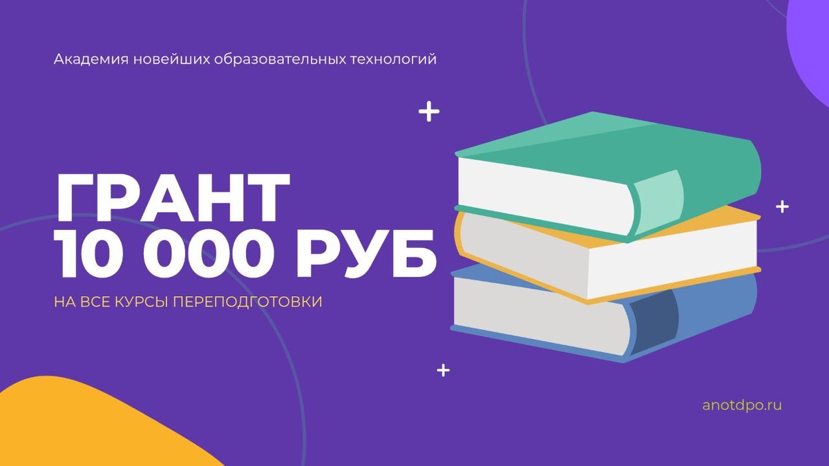 🔔10 000 руб - ГРАНТ от Академии новейших образовательных технологий! 🎓 Мы рады сообщить, что открыта возможность получить грант на сумму 10 000 рублей на прохождение курсов переподготовки. Это уникальный шанс повысить квалификацию и расширить свои знания, не обременяя бюджет. 🔹 Что мы предлагаем? - Обширный выбор курсов переподготовки в различных областях: от управления до психологии, от педагогики до юриспруденции. - Актуальные программы. - Онлайн-формат. 🔹 Кто может стать участником? - Все желающие, кто стремится развивать свои навыки и повысить конкурентоспособность на рынке труда. 🔹 Как получить грант? 1. Зайдите на наш сайт anotdpo.ru и выберите курс переподготовки, который вам подходит. 2. Заполните заявку. 3. Прикрепите документы на зачисление или отправьте сразу в Приемную комиссию pk@anotdpo.ru. 🌟 Срок действия гранта до 13.07.25! Актуальные цены с учетом гранта смотрите на сайте anotdpo.ru🌟 #Грант #Образование #Переподготовка #АкадемияНовыхТехнологий #ANOTDPO #Ку