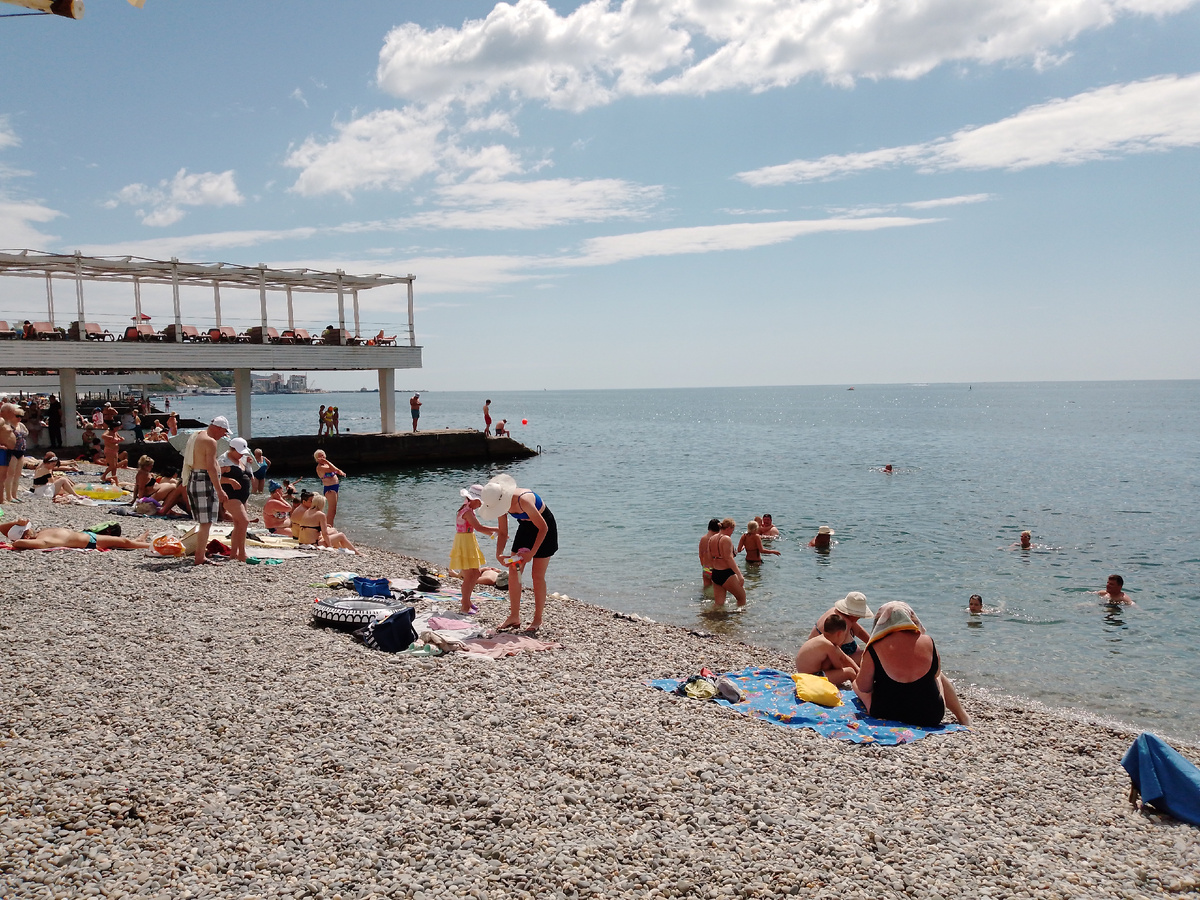 Здравствуйте гости и подписчики моего канала! Как всегда на отдыхе у меня есть традиция отмечать "День приезда". Не нарушила я эту традицию в этом году. Подруга меня встретила, мы благополучно заселились, первый день ходили к морю . Вода чистая, возле берега наблюдались мелкие медузы, а в толще воды плавали рыбки и не маленькие,они совсем не боятся людей. Тепло пришло только недавно поэтому вода достаточно холодная, но я все равно купалась, несколько раз по немногу. Берег Масандроского пляжа а мы были именно на нём, из средней гальки, с утра людей не много, а потом добавляются. Лежак стоит 500 рублей до 18:00, мы взяли один на двоих. Дочь мне забронировала гостинку по 2500 за сутки. Не скажу что все идеально но вполне приемлемо. Но при желании, можно снять жилье и по приезду, предложений много. На второй день с утра море, а потом в кафе отметить встречу с подругой. Купаются не многие. Волны сбивают с ног. Красивый дворик. Кафе красиво оформлено. Начало положено. Оче