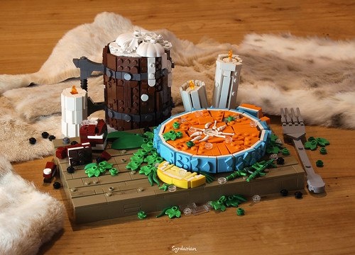 Морской змей на обед — средневековая таверна из LEGO 🔥 Представьте: 10 дней пути безлюдными землями, ночёвки под звёздами — и вот она, таверна у моря. Внутри толпа, но вам нужно только поесть. Официант приносит доску с вяленым мясом, пивом и... куском морского змея! 🤯 Оказывается, тушу выбросило на берег, а местные не растерялись. Автор вдохновлялся средневековой и скандинавской кухней (даже если большинство рецептов — фантазия ИИ). Этот MOC создан для конкурса Summer Joust 2025 в категории «Натюрморт». Выглядит атмосферно! Источник: Flickr Lego Builders group