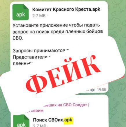 ⚡️Мошенники атакуют семьи военнослужащих: им пишут с поддельной страницы «Красного Креста» ❗️Россиянам массово отправляют вредоносные файлы. Аферисты обещают доступ к якобы закрытым спискам пленных бойцов СВО и просят открыть вложение. ❗️На самом деле они присылают файл с вирусом. Открыв его, пользователь мессенджера попадает в ловушку, данные с телефонов жертв мошенников попадают в руки злоумышленников. ❗️Отличить такие файлы от безопасных несложно — любое название имеет в конце аббревиатуру «.apk» ❗️Делитесь этой публикацией с близкими и предупредите их о новой схеме! Фото: @mvd_23 https://vk.com/public212083585 https://dzen.ru/id/660af8bc3bd95d5b99e56429 Подпишись на СВОй "Рассвет"