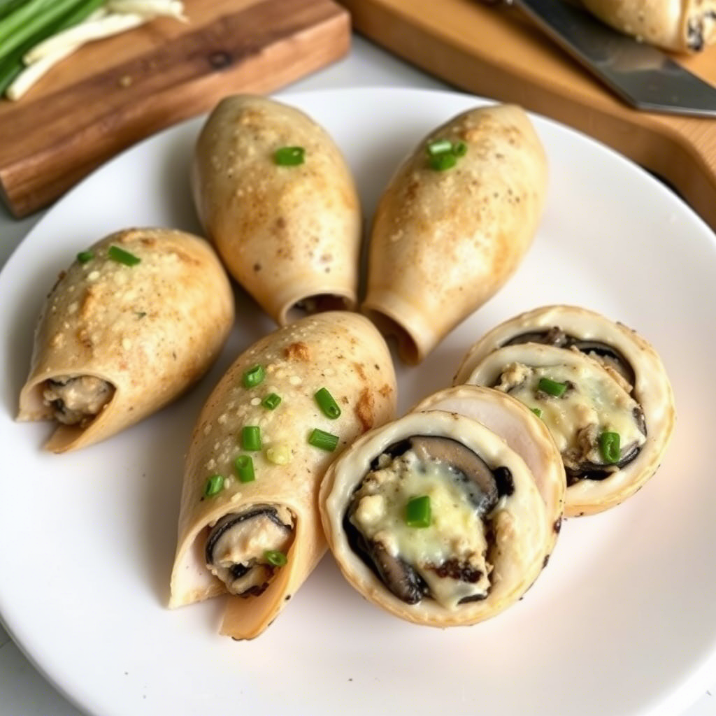 Ищете необычную, но по-домашнему уютную закуску, которая украсит праздничный стол или станет ярким акцентом в будний вечер? Попробуйте фаршированные кальмары с грибами, сыром и зеленым луком — это идеальное сочетание морепродуктов, ароматных грибов, тягучего сыра и свежей зелени. 🧾 Ингредиенты: на 4 порции Для кальмаров: - Кальмары свежие или размороженные — 4 крупные тушки (около 600–700 г) - Соль — по вкусу - Вода — для бланширования (если нужно) Для начинки: - Грибы (шампиньоны, белые, лисички) — 250 г - Лук репчатый — 1 шт. - Чеснок — 2 зубчика - Зеленый лук — 3–4 стебля - Твердый сыр (например, пармезан, «Российский», сулугуни) — 80–100 г - Яйцо куриное — 1 шт. - Соль — по вкусу - Свежемолотый черный перец — по вкусу - Сушеные травы (прованские, орегано, паприка) — щепотка (по желанию) - Оливковое или растительное масло — для обжаривания 👨🍳 Пошаговое приготовление: Шаг 1: Подготовка кальмаров 1. Если кальмары замороженные — заранее разморозьте их в холодильнике ил